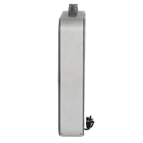 - Adjustable thermostat turns fan on or off automatically